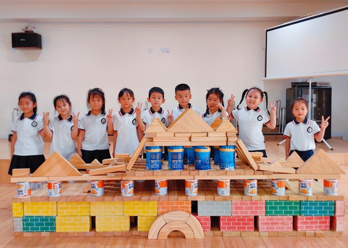 百种建构·巧手共筑:小小的建构世界,充满着孩子大大的梦想,孩子们巧妙地运用垒高、架空、接插、间接排列、围合盖顶等建构技能搭建自己心中的天安门广场。这一砖一瓦的堆砌,不仅是创造力的迸发,更是对首都、对祖国的深情向往和立体认知。