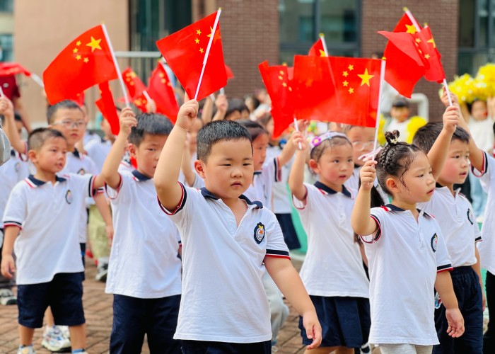 一场关于孩子们的阅兵开始了!瞧!各班的小小方阵意气风发,孩子们手持鲜艳的五星红旗,迈着稚嫩却坚定的步伐,神采奕奕地走过升旗台。在充满爱的旋律里,有明媚的童心,有嘹亮的口号。蓝天下,迎着初升的晨曦,举行庄严而又隆重的升国旗仪式,眺望着国旗冉冉升起,耳畔回荡着气壮山河的国歌,为这一庄严的仪式而自豪,我们因肃然于国旗前而激动。